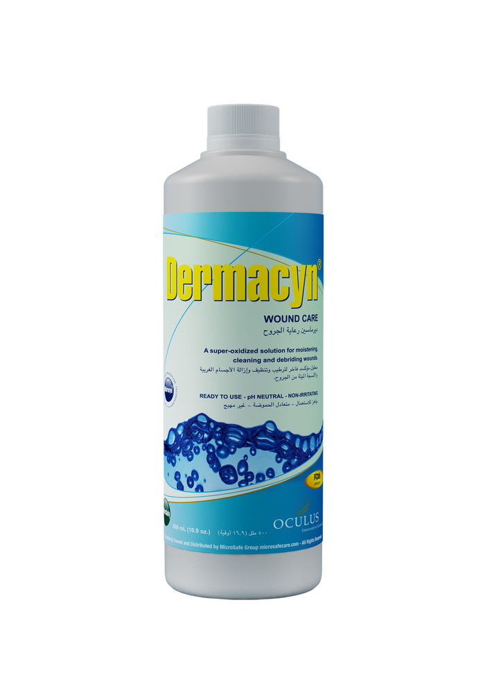 MicroSafe® Wound Care features an advanced wound-irrigation solution that not only removes microorganisms and debris mechanically but also eliminates harmful agents, creating an optimal environment for accelerated healing. Dermacyn® Wound Care can also be left on the wound, aiding in softening and promoting a conducive healing process.